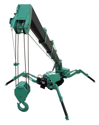 The mini spider crane rented from LEVEE LIBRE allows the handling of loads up to 2T8 and up to 8.70 m in both open and tight spaces.